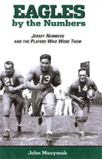 Two examples will provide some illumination on my thought process. Quarterback Tommy Thompson wore 11 from 1945-50 when he took the Eagles to three consecutive NFL championship games. However, 11 was also the number worn by 1960 championship quarterback Norm Van Brocklin. Both players needed to be covered in any Eagles history so I made Thompson the subject of chapter 10, the number he wore in 1941 and 1942 for the Birds. I don't know which number he actually preferred. When he arrived in Philly from Pittsburgh, he wore 10 and rookie Lou Ghecas wore 11; when Ghecas went into the service in 1942, Thompson stayed with 10 and rookie Dick Erdlitz wore 11; when Tommy returned from World War II in 1945, 10 was being worn by Allie Sherman so Thompson switched to 11 for the prime years of his career.
